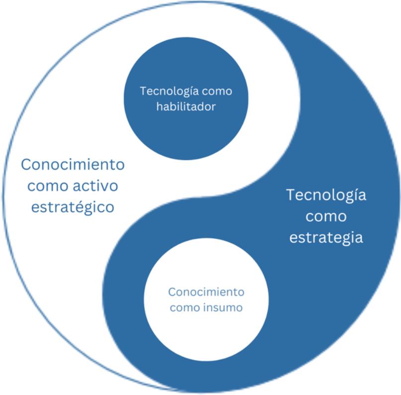 Como su nombre lo indica, este es un sistema iterativo que busca que el conocimiento se convierta en un activo estratégico, teniendo la tecnología como habilitador, y que usa la tecnología como estrategia teniendo el conocimiento como insumo base. Este círculo virtuoso tipo Ying yang, busca llevar al PNUD a convertirse eventualmente en un asesor, generando insumos de política pública en múltiples niveles, que le permita no solo actuar de manera responsiva, si también de manera propositiva.